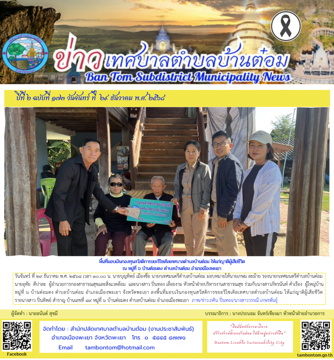 บัญชีรายชื่อผู้มีสิทธิรับเงินเบี้ยยังชีพผู้สูงอายุของเทศบาลตำบลบ้านต๋อม