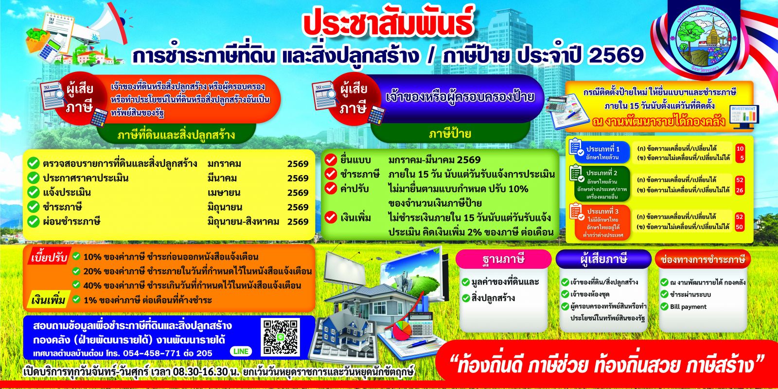 ประชาสัมพันธ์ภาษีที่ดินและสิ่งปลูกสร้าง ภาษีป้าย ประจำปี พ.ศ. 2569